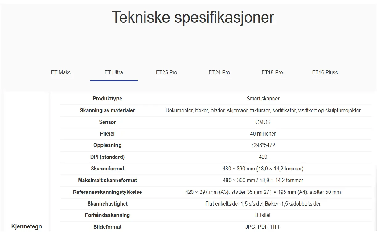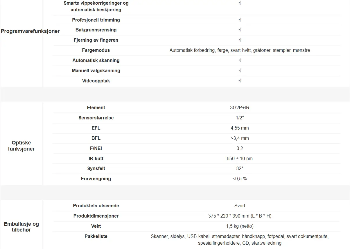 Bokskanner som skanner bøker og dokumenter opp til A3-format. 40 MP HD-kamera. Skanner 1 side på 1,5 sekund. Retter ut kurver i oppslått bok. Farger, gråtoner, sort/ hvitt. Fremhever mønstre, stempelavtrykk og annen dårlig trykk. Intelligent prosessprogramvare. Antirefleks. Oversiktlig presentasjon av skannede filer.